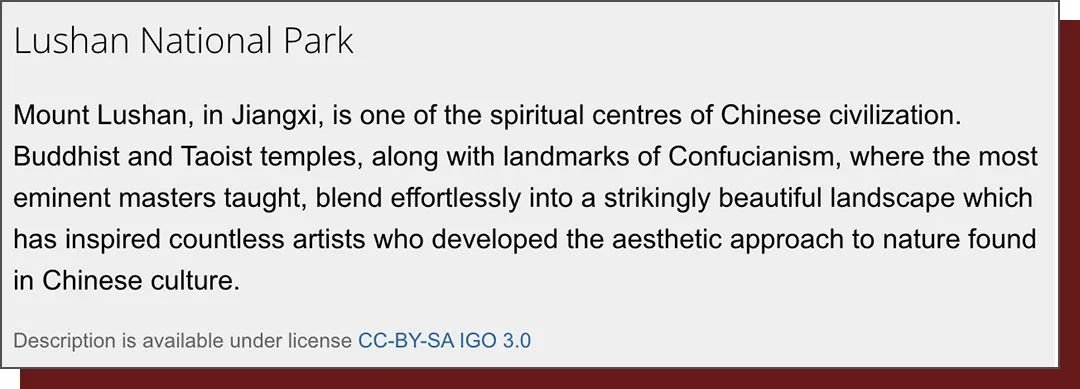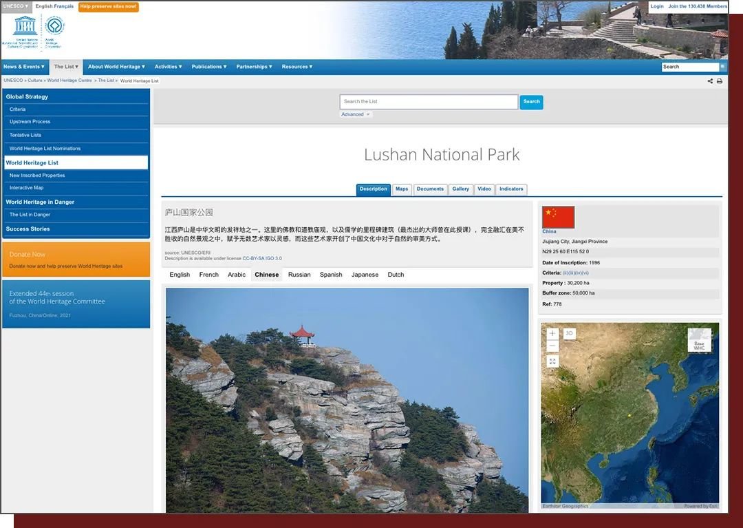 联合国世界遗产委员会(庐山官网英文表述) 图源:whc.unesco.org