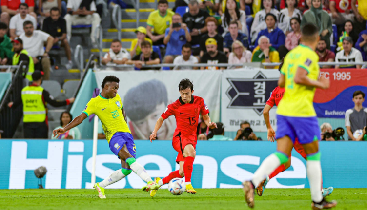 12月6日,世界杯1/8决赛,韩国队面对五星巴西,吃到了一场1-4的惨败。巴西队的内马尔复出,维尼修斯、理查利森和内马尔等人火力全开,白昇浩在下半场为韩国队打进了挽回颜面的一球。这样巴西队连续8届世界杯都可以至少闯入八强,韩国队则被淘汰出局。