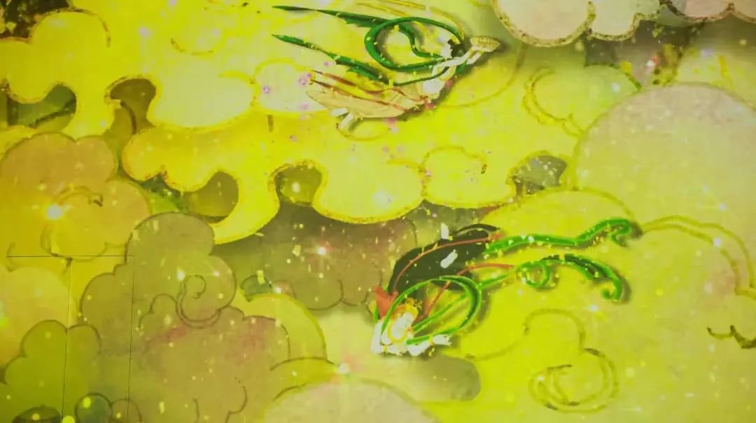 在“敦煌舞乐”中,我们以《观无量寿经变图》中的“反弹琵琶”等敦煌经典元素为原型,选取“伎乐飞天”等飞天文化打造欢乐祥和的舞乐场景。观众可以在飞天的带领下,仿佛一秒梦穿敦煌,来到了理想中的净土世界。