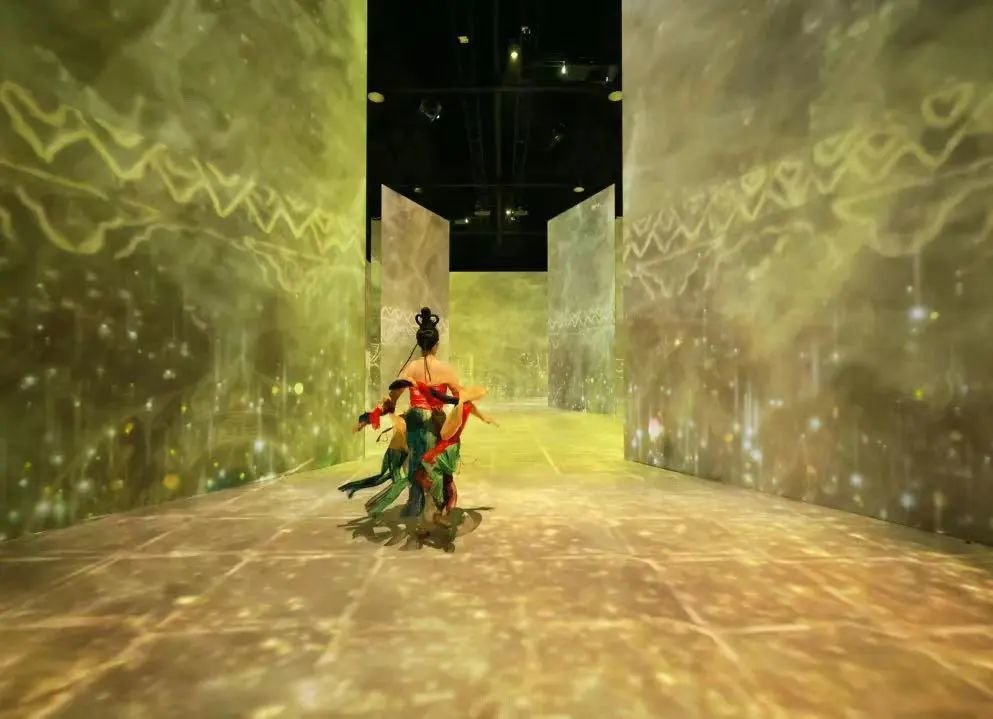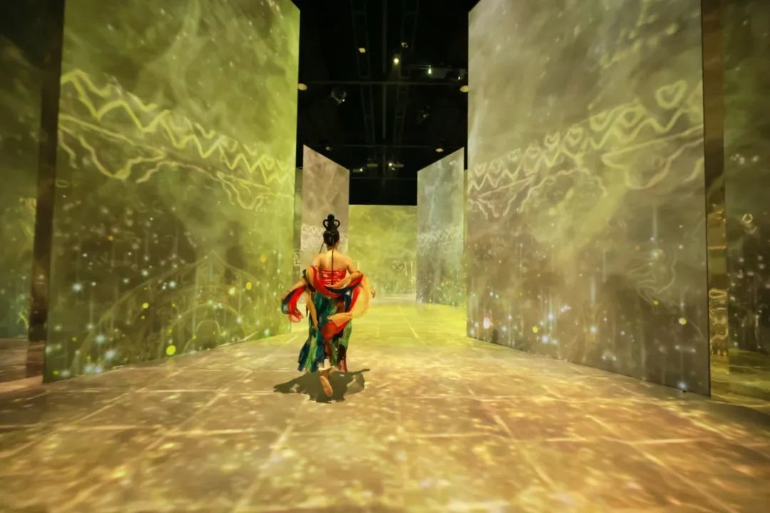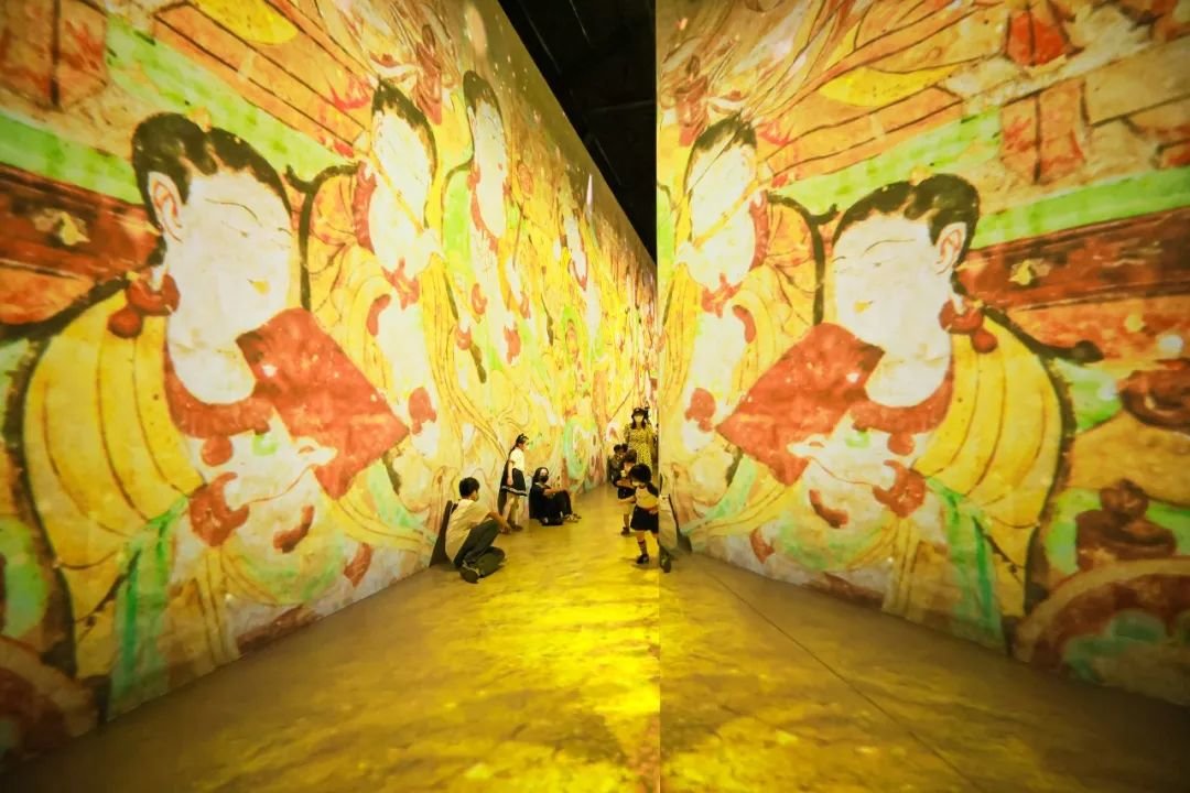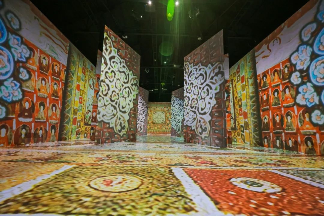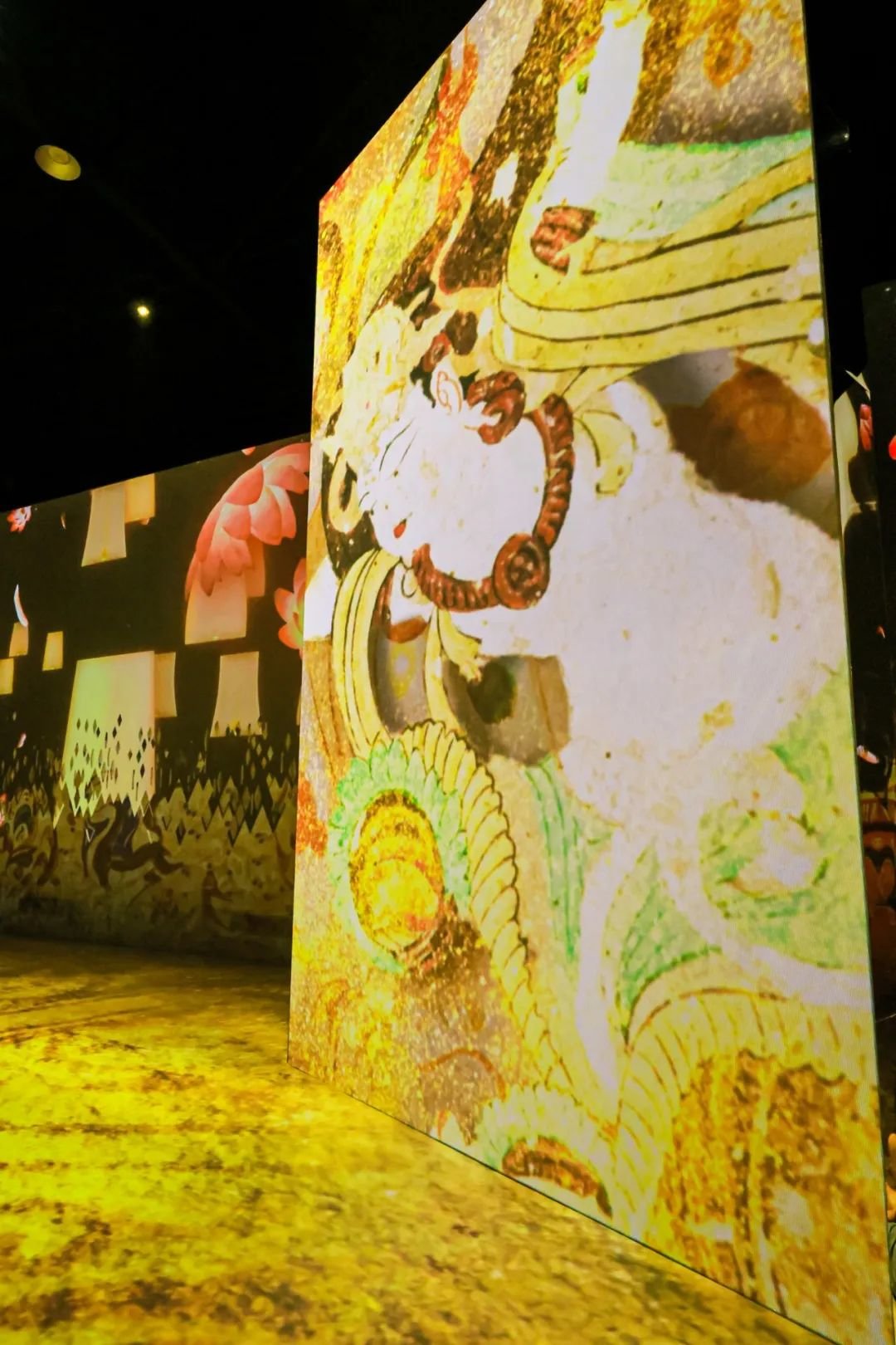 “遇见敦煌 光影艺术展”将敦煌石窟壁画彩塑,以光影的形式带到了上海,呈现出“丝路史话、敦煌舞乐、九色神鹿、敦煌千佛”四大主题。