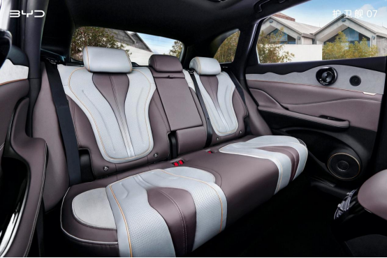 内饰方面,设计更加简约时尚。护卫舰07采用云雾灰内饰配色,海蕴环抱奢享座舱通过海洋灵动设计、细节造型、材质色彩的精雕细琢,营造出独具海洋元素的奢享驾乘空间。在空间布局上,新车长宽高分别为4820*1920*1750(mm)、轴距2820(mm)空间表现优于同级车型,实现了座舱与后备厢空间最大化。同时,护卫舰07舍弃了使用率较低的第三排座椅,采用大五座布局,结合2820mm轴距与1920mm的车身宽度实现了座舱与后备厢空间最大化。比亚迪的车型每一款都可以说是非常的贴心,而且还符合时下的审美需求,越简单的东西越有内涵,护卫舰07也在印证着这句话。