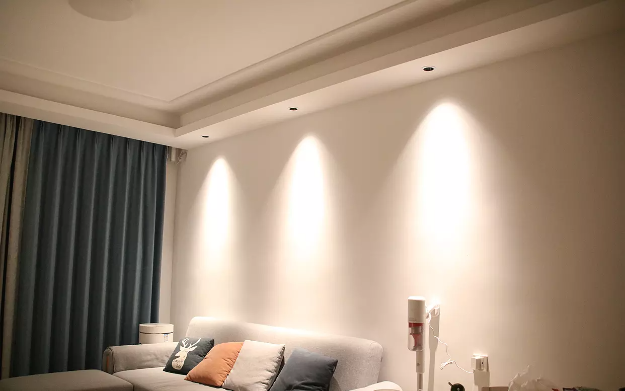 我选择的安装位置分别是客厅、主卧、入户玄关这三个区域,我家里的客厅有5个,主卧房间有4个,入户悬关有1个,刚好一共10个,下面给大家展示一下我的三个区域安装效果。