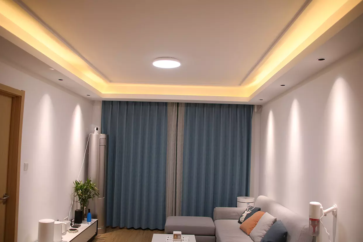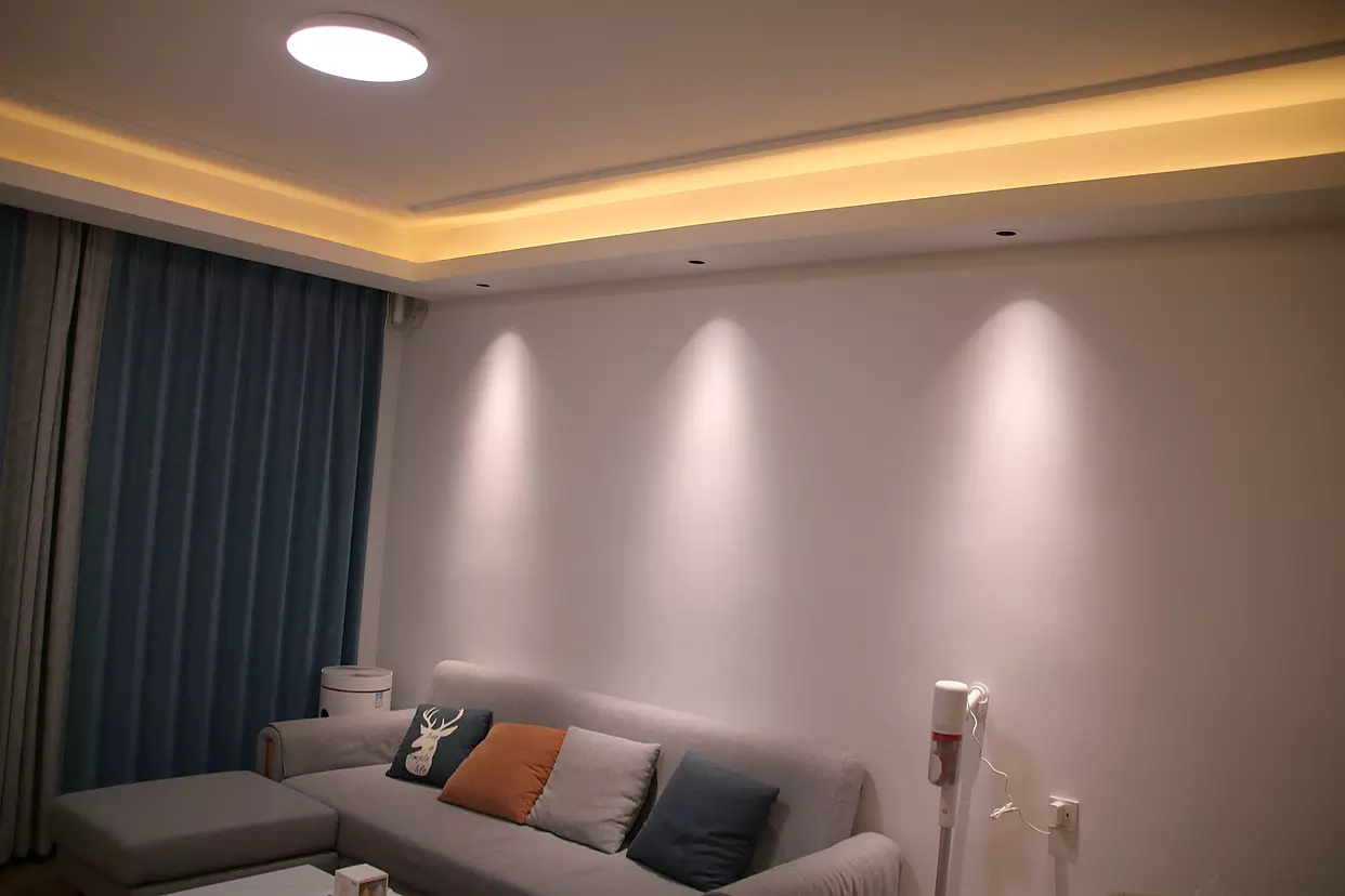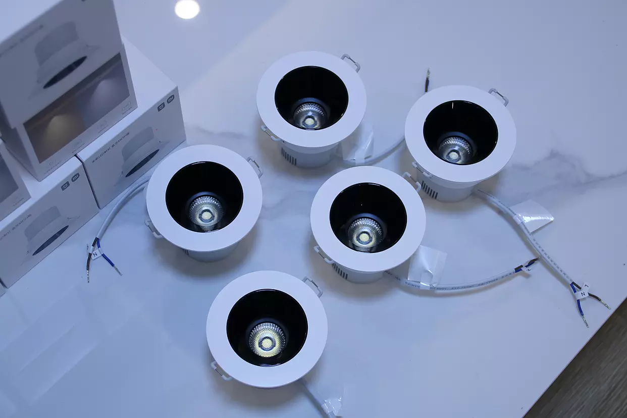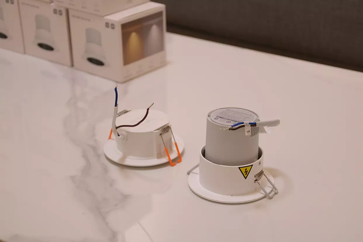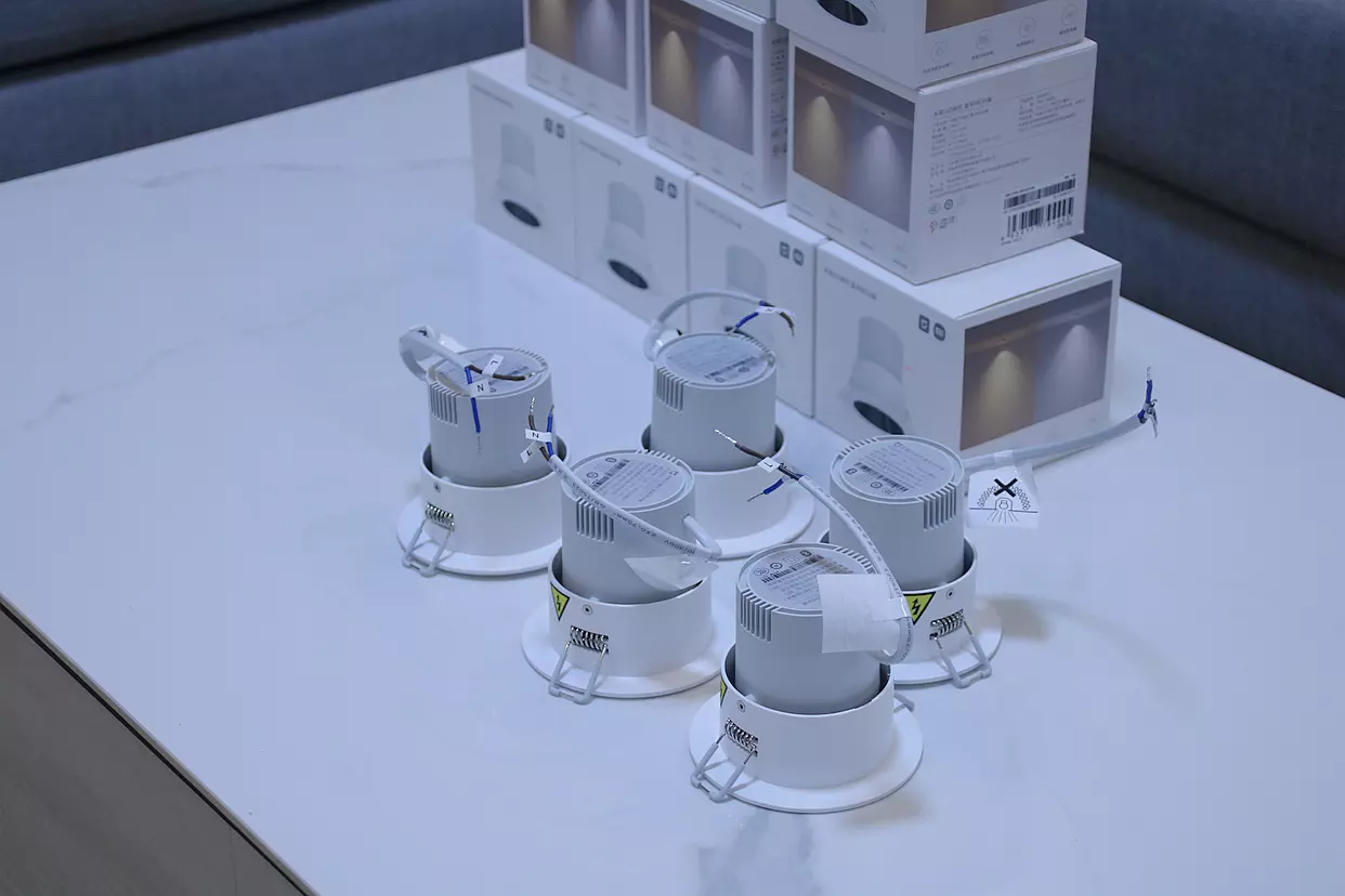最近这两年装修风格又换了,很多人偏爱那种无主灯式的极简设计,只需在墙面开一些75-80mm圆孔装上筒灯或者射灯,另外在搭配一组灯带就可以了,即使是有主灯设计的新房,针对那种有吊顶装修风格房间,也会在吊顶处安装筒灯、射灯这一类的灯具,我的新房交付后一直对开发商安装的筒灯不满意,自从住进去了,每次使用客厅的筒灯总感觉它的亮度开了跟没开一样,这次我一口气买了10个米家LED射灯 蓝牙MESH版,把开发商的劣质筒灯全部替换掉了。