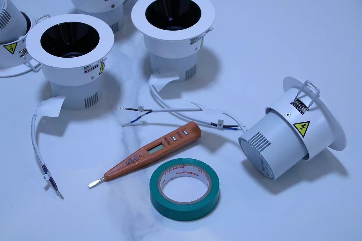 针对米家LED射灯 蓝牙MESH版的安装问题,如果动手能力不强的话可以选择小米官方的付费安装服务,自己能搞定的话就自己装,可以省点钱,毕竟射灯的安装也是比较简单的,如果像我这种自己安装的话,得先准备试电笔和电工胶带,当然还有更快速的,那就买那种电线夹,好像是几毛钱一个,它不需要电工胶带缠绕。