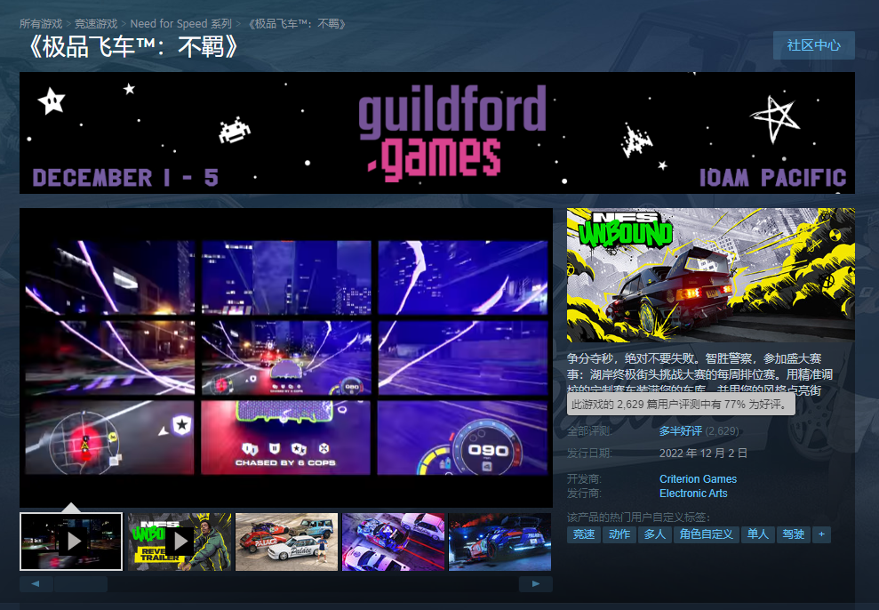 IT之家 12 月 6 日消息,《极品飞车 22:不羁》已于 12 月 2 日发售(标准版 248 元,豪华版 288 元),登陆 PC,PS5 和 Xbox Series X|S 平台。