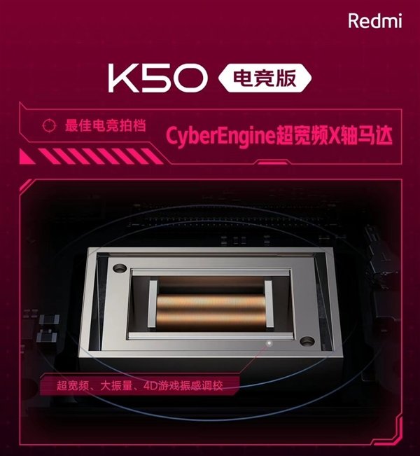 12月6日消息,博主熊猫很禿然爆料,小米13配备了CyberEngine超宽频线性马达,这颗线性马达由Redmi K50电竞版首发搭载,是Redmi与瑞声科技联合打造的产品。