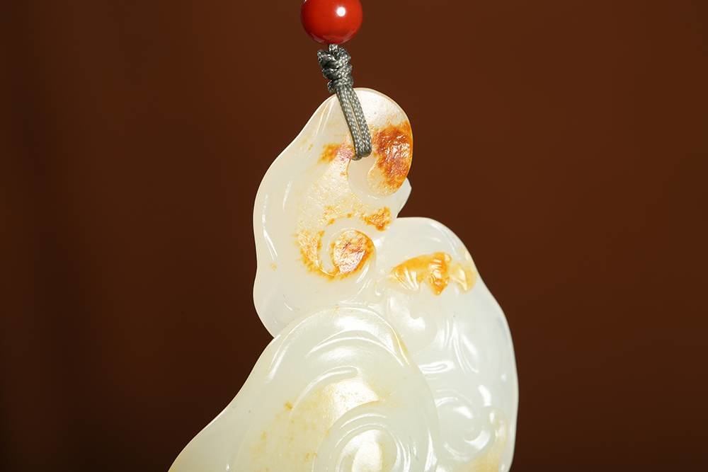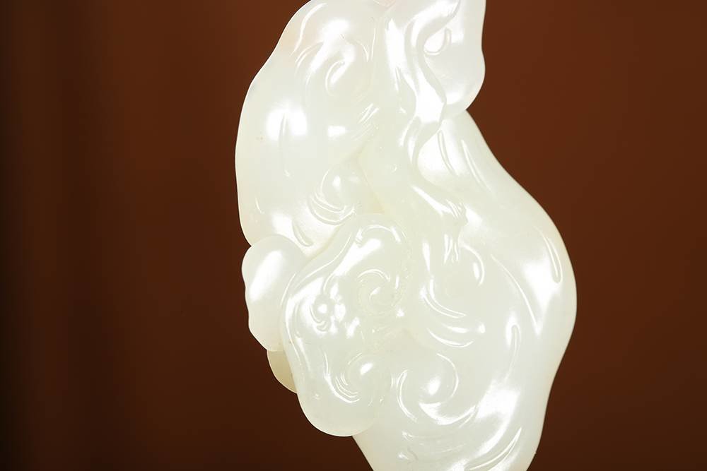 最后,来聊聊本场直播拍卖中这件经典的新疆和田籽料作品《灵芝如意》,克重约31克,规格约为67.7*36*12mm,讲真,白玉确实适用柔面、柔线的创作,优质的选材和圆融的表象更能凸显绝佳的玉质感。