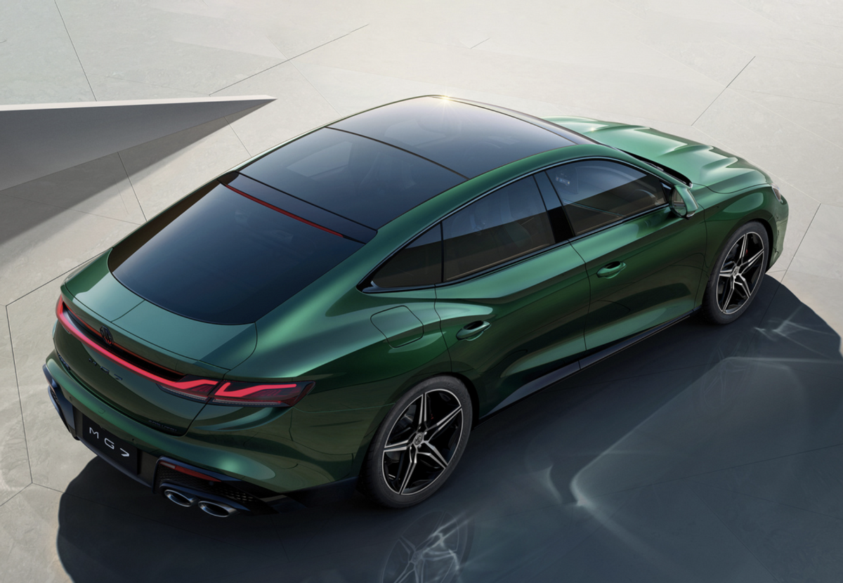 外观方面,MG7前脸大尺寸的进气格栅非常惹眼,配上造型犀利的大灯组,看上去就是一副不好惹的样子。车侧是MG7最帅的部分,作为一台特征明显的轿跑车,它采用及其优雅的溜背设计,车顶线条从A柱就开始慢慢下沉,和充满力量感的肩线在尾部会和,打造流畅动感的车身轮廓。