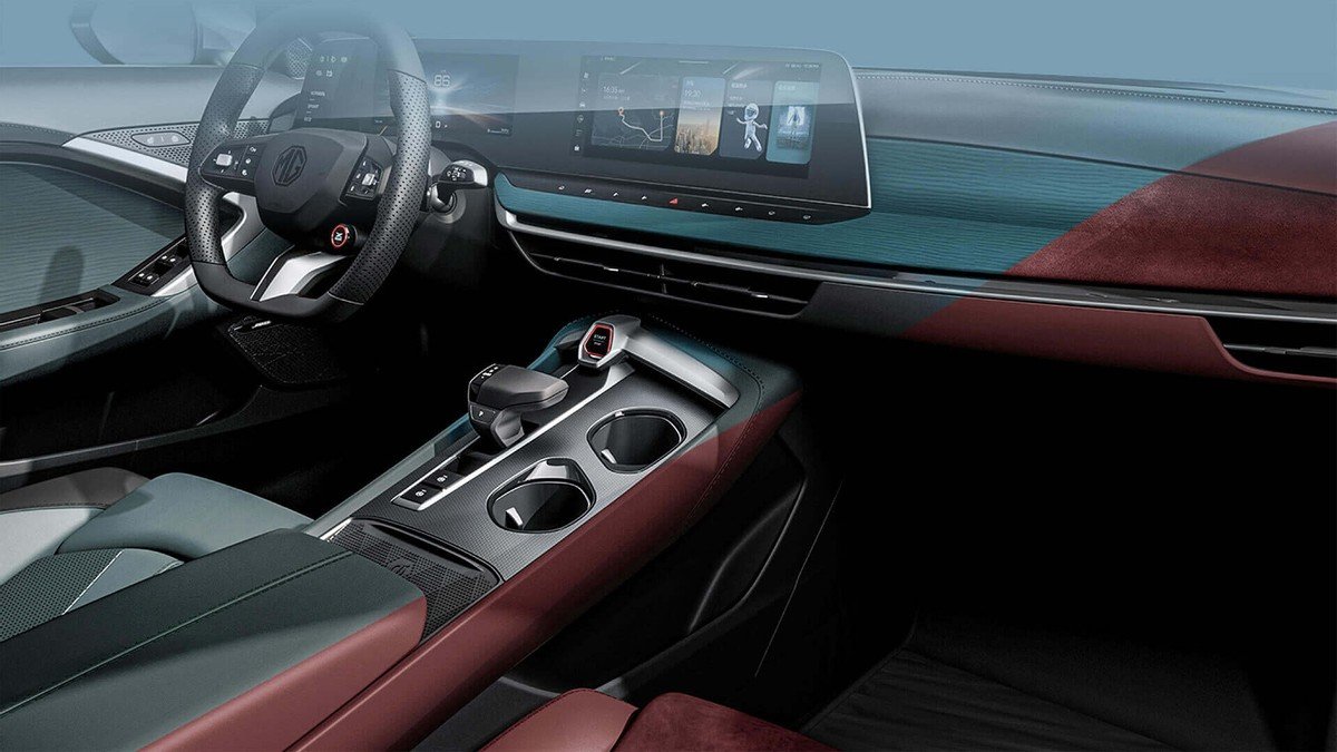 进入车内,MG7拥有非常现代的氛围,33英寸的一体式连屏凸显科技感,智能座舱还搭载8155芯片。细节方面,平底方向盘和红色启动按键等设计都很合年轻人的喜好。