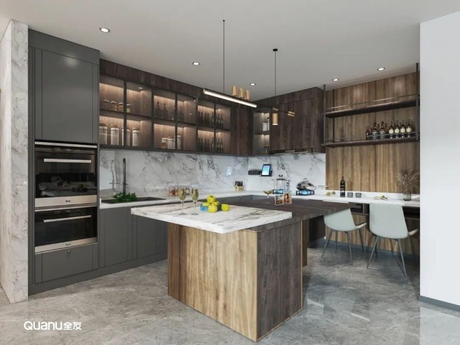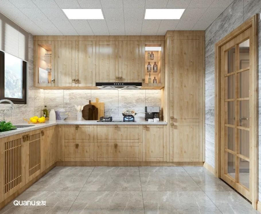 原木色调自带自然质感,给人以温馨舒适的视觉感受,厨房设计采用原木色系,还可以缓解烹饪所带来的劳累感,治愈感满满。原木风格搭配开放式厨房,在这样的环境与氛围中,邀请三五好友一起下厨聚会,何尝不是一种享受。
