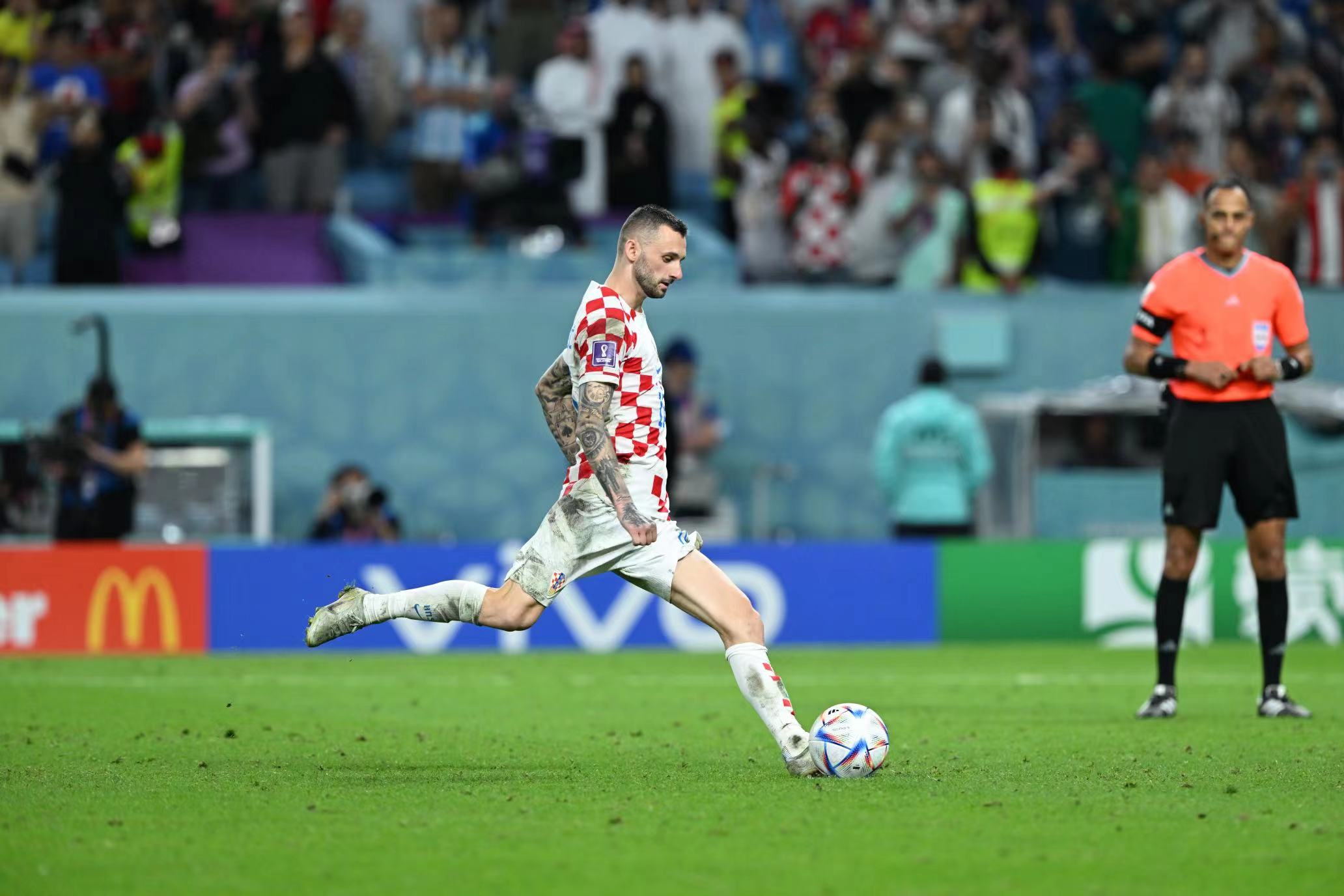 布罗佐维奇罚点球 红星新闻摄影记者 刘海韵 发自卡塔尔世界杯现场