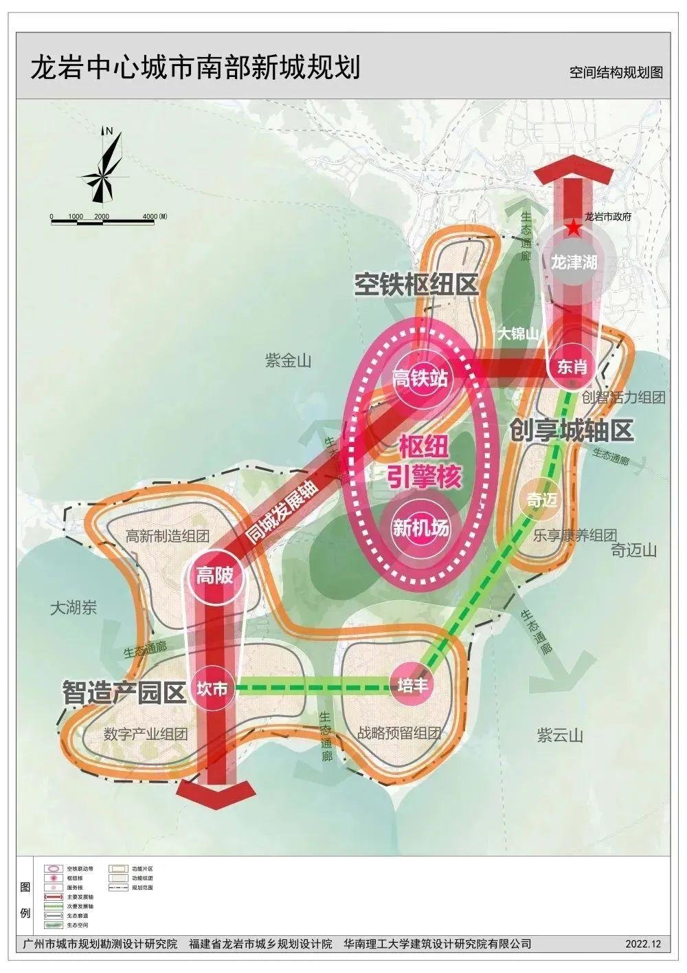 “一核”:依托龙岩新机场+新高铁站打造联动融合的空铁枢纽核,作为强引擎,拉动三大片区发展。
