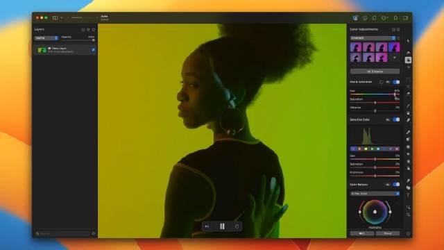 Pixelmator Pro 3.2 版本的应用程序让用户能够对视频进行快速编辑,如修剪、裁剪和颜色调整,并让用户在不离开 Pixelmator Pro 的情况下将其与文本、图像和形状相结合,应用遮罩等。