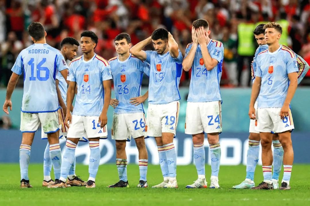 此前这次世界杯的首场点球大战,日本队以糟糕的点球被淘汰出局,没想到在一天之后,又有一支球队上演了差不多的剧情。当上轮被日本队击败的西班牙队,对阵本届世界杯表现不俗的黑马摩洛哥队,常规时间内斗牛士军团占据了绝对优势,手握77%的控球率却打不开局面,多达13次射门仅有1次射正!