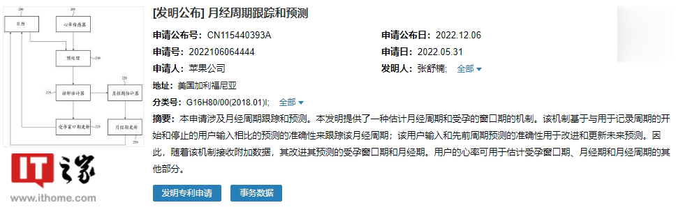 IT之家 12 月 7 日消息,据国家知识产权局中国专利公布公告(申请公布号:CN115440393A)显示苹果公司申请的“月经周期跟踪和预测”专利公布。