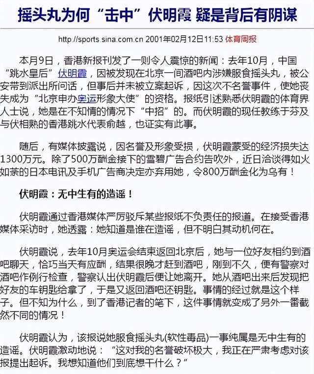 可是,2001年,一条新闻让伏明霞陷入被动。