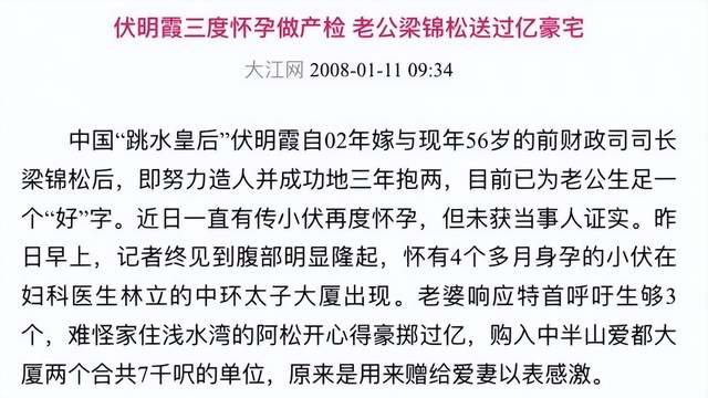 伏明霞怀三胎,梁锦松豪掷上亿买下两套共计7000尺(700平)的单位送给太太。