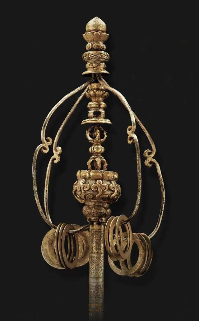 这件锡杖敕造于唐咸通十四年(公元874年),为唐懿宗为迎送佛骨舍利而造。因为使用金银打造的缘故,整件锡杖通体金光闪烁,熠熠生辉,不仅象征着佛教至高的威权,更被称为“世界锡杖之王”。