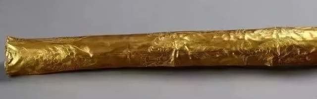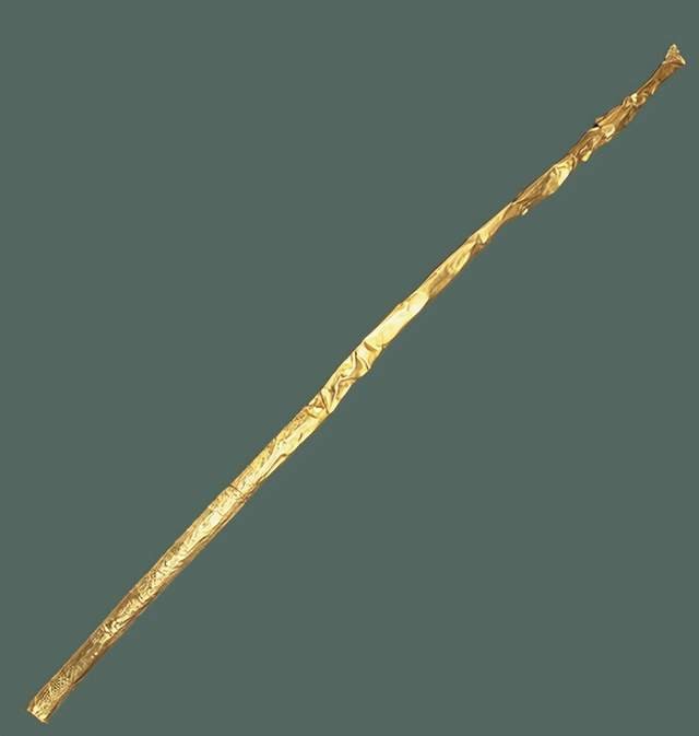 金杖根据长度和直径计算,它的金皮的展开面积为1026平方厘米。要知道,在几千年前,制作出这么大的金皮,锤制得如此平整,表面如此光滑,足以说明当时的人对黄金良好的延性和展性等物理性能已有了充分认识。