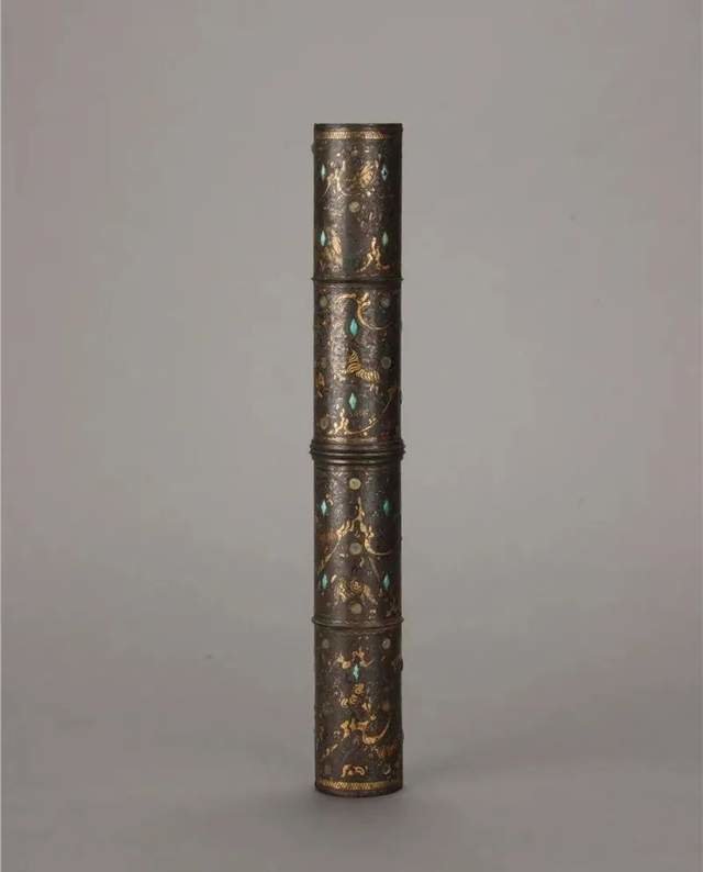 错金银镶松石狩猎纹铜伞铤