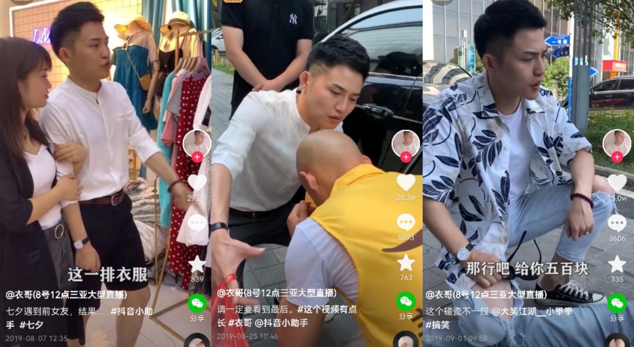 自从抖音三番两次惩治虚假剧情直播后,带货派发现,近来依靠剧情视频起家的衣哥减少了发布内容视频的频率,转而请来了各个明星助力直播间,并且视频内容中直播预告占比加重,剧情向视频渐渐被取代。