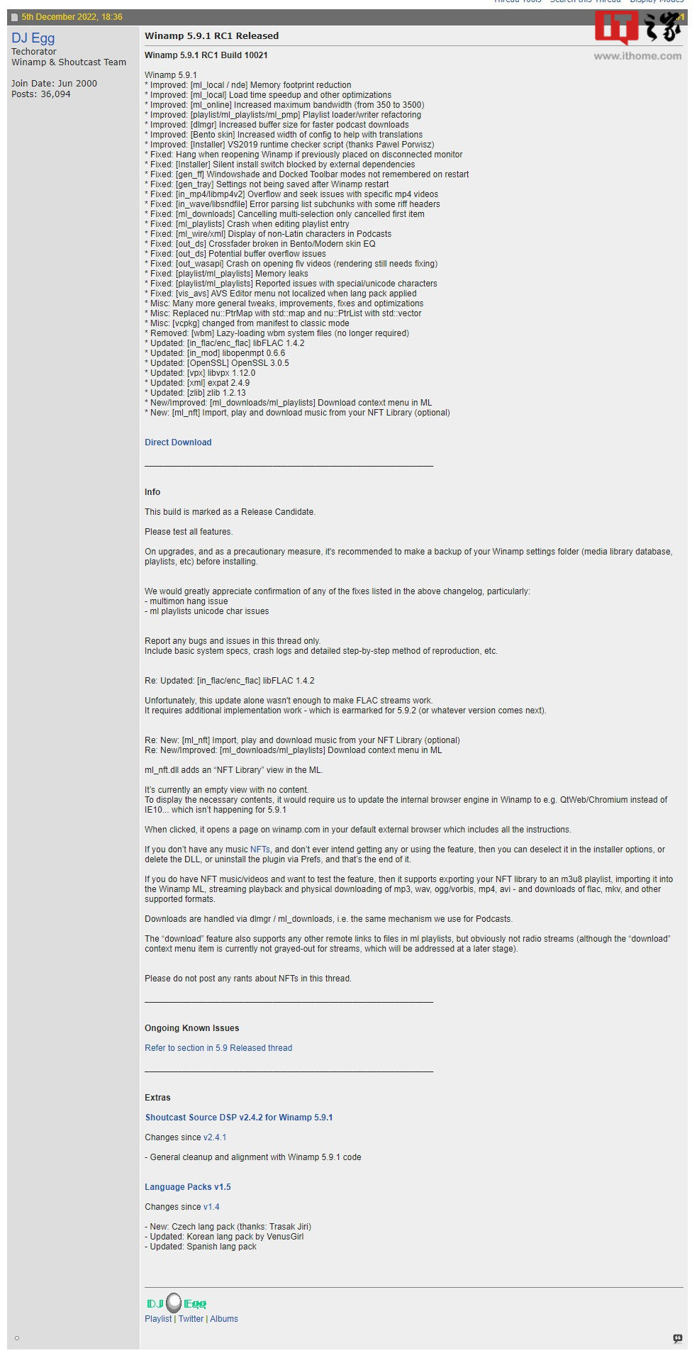 IT之家 12 月 7 日消息,在今年 8 月发布的 5.9 版本基础上,老牌音乐播放器 WinAmp 近日发布了 5.9.1 版本更新。本次更新在修复此前版本中发现的问题之外,还添加了 NFT(非同质化代币)音乐功能。