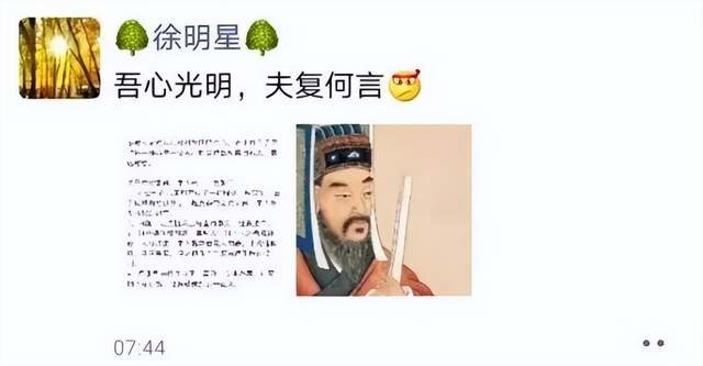 一个多月后,11月20日,徐明星在朋友圈发文:“目前,司法机关已经查清事实、还我清白”。