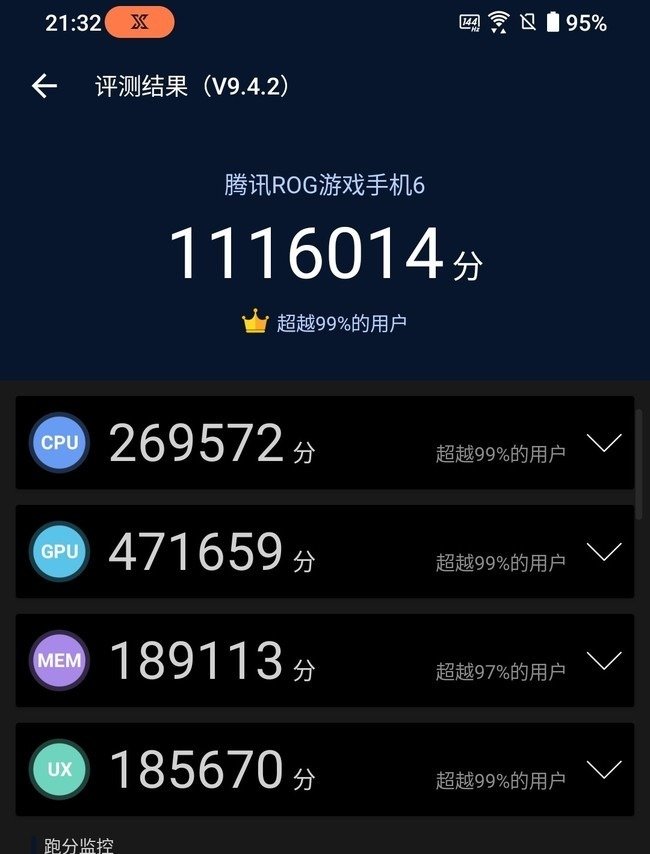 而在配置方面,ROG 6 暗黑破坏神:不朽典藏限量版依然采用了高规格设计,搭载了第一代高通骁龙8+移动平台,台积电4nm制程工艺以及高通Adreno 730 GPU设计,在性能上,同时,还配备了16GB LPDDR5 内存和512GB UFS3.1存储。在安兔兔跑分测试中,ROG6获得了1116014分的出色表现成绩。其中CPU得分为269572分,GPU得分为471659分,在3DMark测试成绩则为2783分。