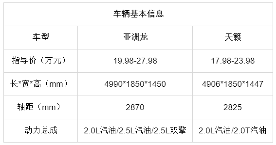 从价格上看,亚洲龙19.98-27.98的价格,要比天籁贵一点,而且价格区间跨度较大,这当然与它提供了3个不同动力,9款配置车型有关,而更重要的则是亚洲龙与雷克萨斯ES均出自TNGA-K平台,尺寸和动力基本一致,标准的B+轿车。而天籁,则依旧是常规B级车的尺寸,特别是长度与轴距,都不及亚洲龙,因此在价格上就要更低一些,而且仅有5个不同配置车型,价格区间跨度也并不高。
