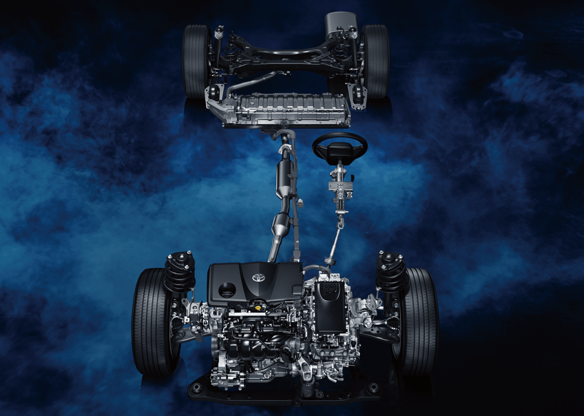 双擎版,顾名思义,即油、电双引擎输出,双擎版的核心动力,由2.5L发动机+E-CVT变速箱+PCU动力控制单元+动力电池组构成,也就是久负盛名的丰田THS II混动系统,系统最大功率160kW,百公里综合油耗4.71L(WLTC工况)。