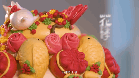 一块平平无奇的面,被捏成千姿百态的形象,集合了各种花草树木、鱼虫鸟兽的馒头,是基本款的升级版——花饽饽。
