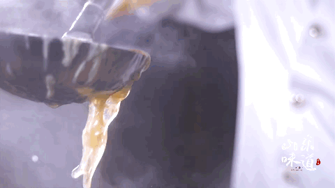以秘制配方调配面汁,入锅炒至酱状,这是马蹄烧饼的馅料,也是马蹄烧饼内瓤酥香的奥秘所在。