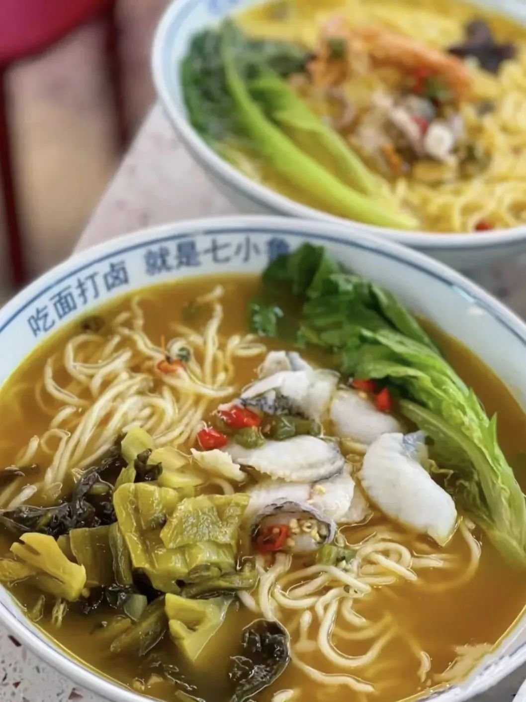 淡茶色汤汁泛着油亮的光泽,一碗面下肚,治愈极了。