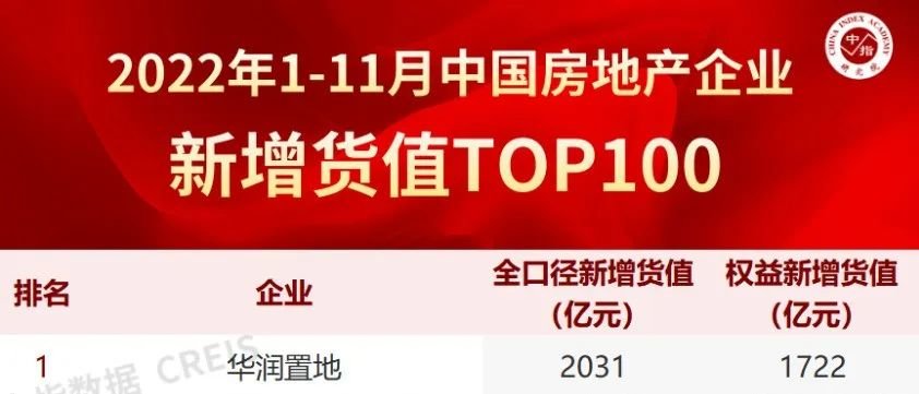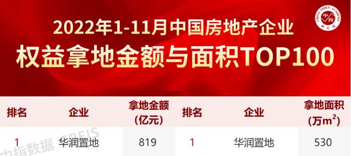 据中指院统计,1-11月,华润非常强势地霸榜了一众拿地相关榜单,权益拿地金额、权益拿地面积、全口径新增货值、权益新增货值,均位列第一。