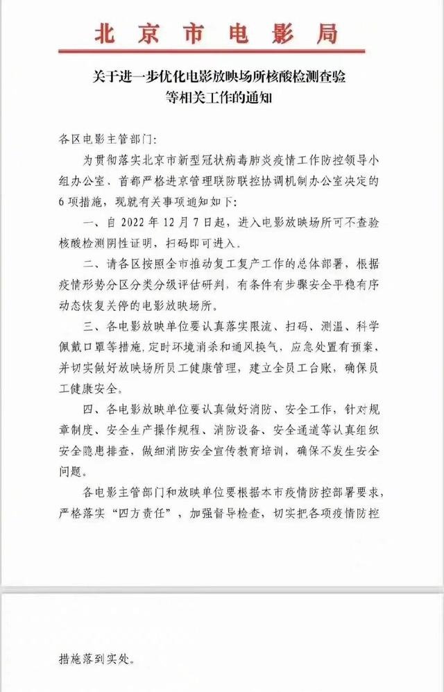 北京市电影局:进入电影院可不查验核酸检测阴性证明