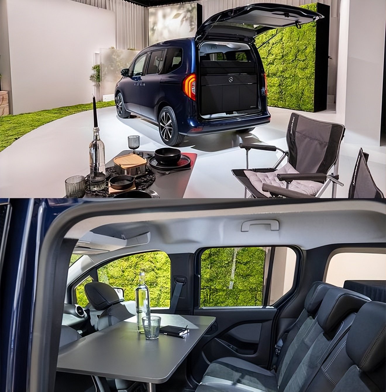 内饰与V级基本无差,后排的两个座椅可以调节靠背角度不说,还能够通过充放气来调整包裹度。并且还配有第二排的座椅前方有可升降的茶桌,休息的时候可以将座椅折叠放平,这样就会搞成一张临时小尺寸的双人床。还有一体式的烹饪区,可以洗菜,还有电磁炉呢,是不是很有意思?