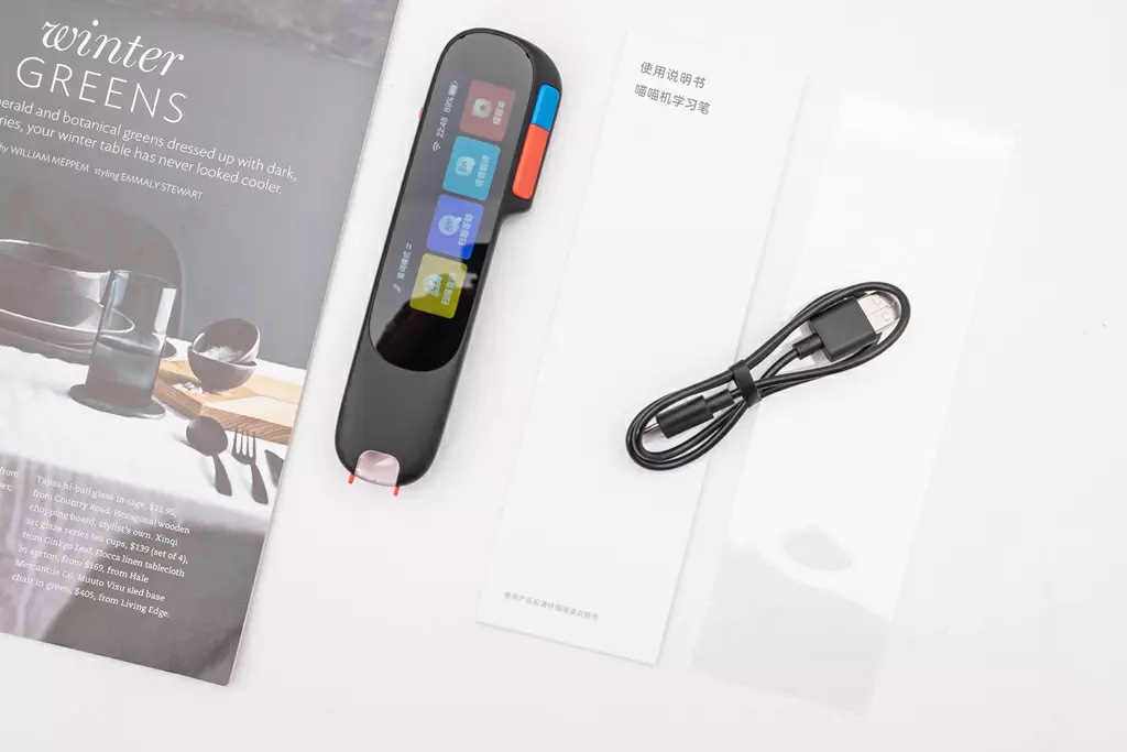 外包装就不多做介绍了,直接看看配件部分,除了喵喵机学习笔S1,还带有说明书、Type-C充电线、屏幕保护膜。