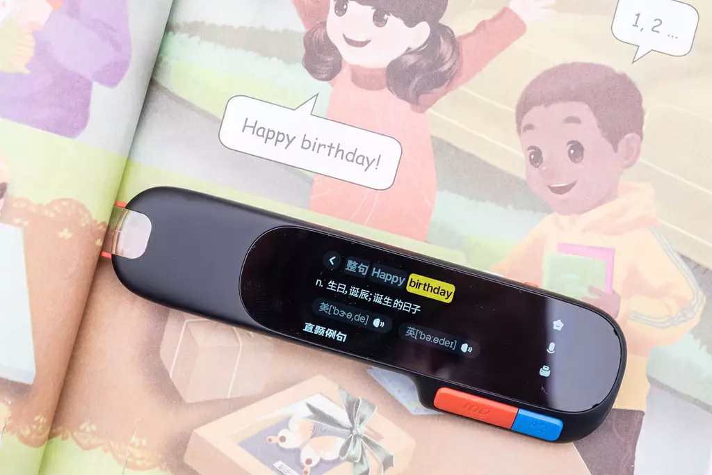 先体验扫描查词,拿女儿三年级的英语课本,然后直接扫描,不到一会就直接显示出来,并且提供精准的发音和例句辨析,非常的迅速。此外,还提供了查词翻译、中英互译等等功能,内置的《牛津高阶英汉双解词典》第9版也是权威的词典,可以提升孩子英语口语能力。