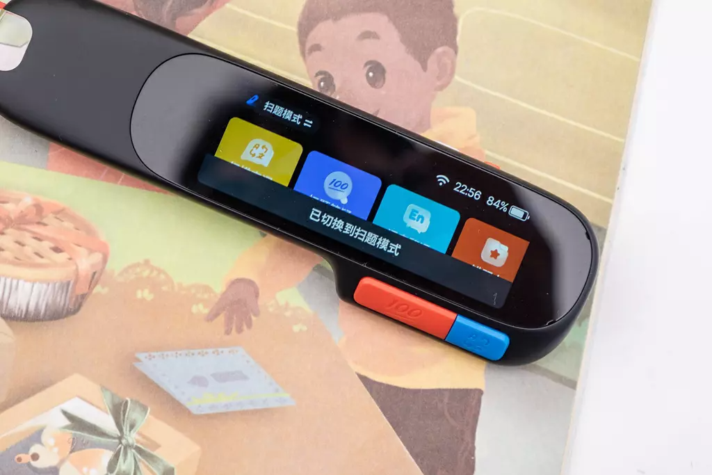 为了能一扫而过快速识别,喵喵机学习笔S1带有OCR扫描摄像头,具有0.3秒快速识别,直接轻轻一扫即可完成整个题目的识别,并快速显示。此外,还内置了显示头和探照灯,就算在灯光不足的场景下,依旧可使用。
