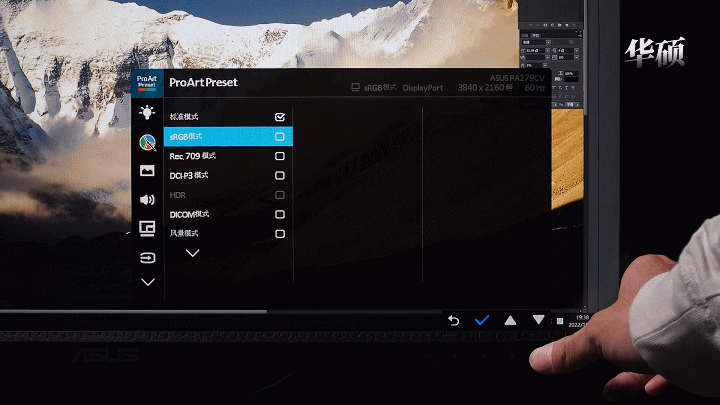 最后是华硕,增加了HDR、DICOM、暗房、渲染等模式,而且还有DCI-P3。美中不足是它的按键触感和操作逻辑比较老派,而且每次切换模式的时候,显示器总有大概半秒的延迟,没有前面三款来的顺滑。