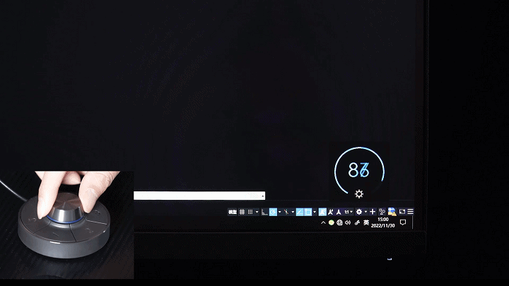 接着来聊聊OSD,在这4款显示器中,明基的价格明显要高于其余3款,我之所以还愿意买它,就是看中了它的OSD控制器——Hotkey Puck小热盘。这个小东西非常有意思,前期可能需要两到三天来熟悉它,一旦上手操作效率可以大幅提升,比如亮度调节、对比度调节、音量调节、专业设计模式切换等等都可以用它来一键完成,而且旋钮的操作比按键更加顺手,微调也更精准,再也不用到显示器底下去扣那几个小按钮,所以我会认为这是一个刚需且对工作效率有帮助的功能。