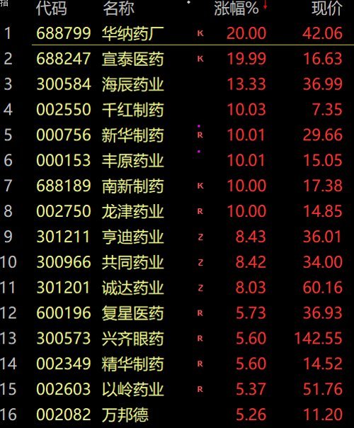 而疫情防控优化之后,泰勒在各个群都可以看到大家在准备药物,医药股再度大涨,以岭药业冲击涨停,股价续创历史新高,宣泰医药、新华制药、龙津药业、丰原药业等封板,亨迪药业、南新制药等多股涨超10%。