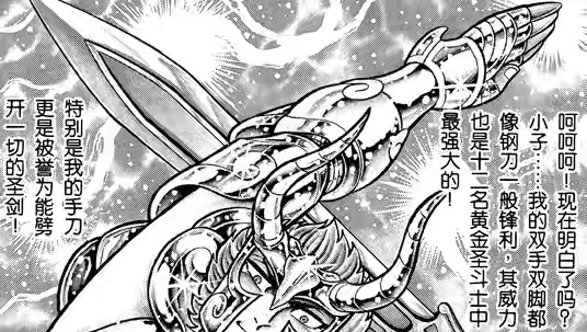 单纯就原著来说的话,那么山羊座的修罗那把圣剑压根就不是圣剑,而是修罗他自己修炼出来的手刃,其大概的原理估计也只是凭借着出手的速度将空气给压缩为气刃之类的存在吧,而且在原著里面,修罗其所修炼出来的也并不止一把手刃,而是四肢都犹如利刃一般的锋利,因此单凭原著的设定的话,那么修罗的圣剑是无法与天秤座的黄金剑相提并论的。
