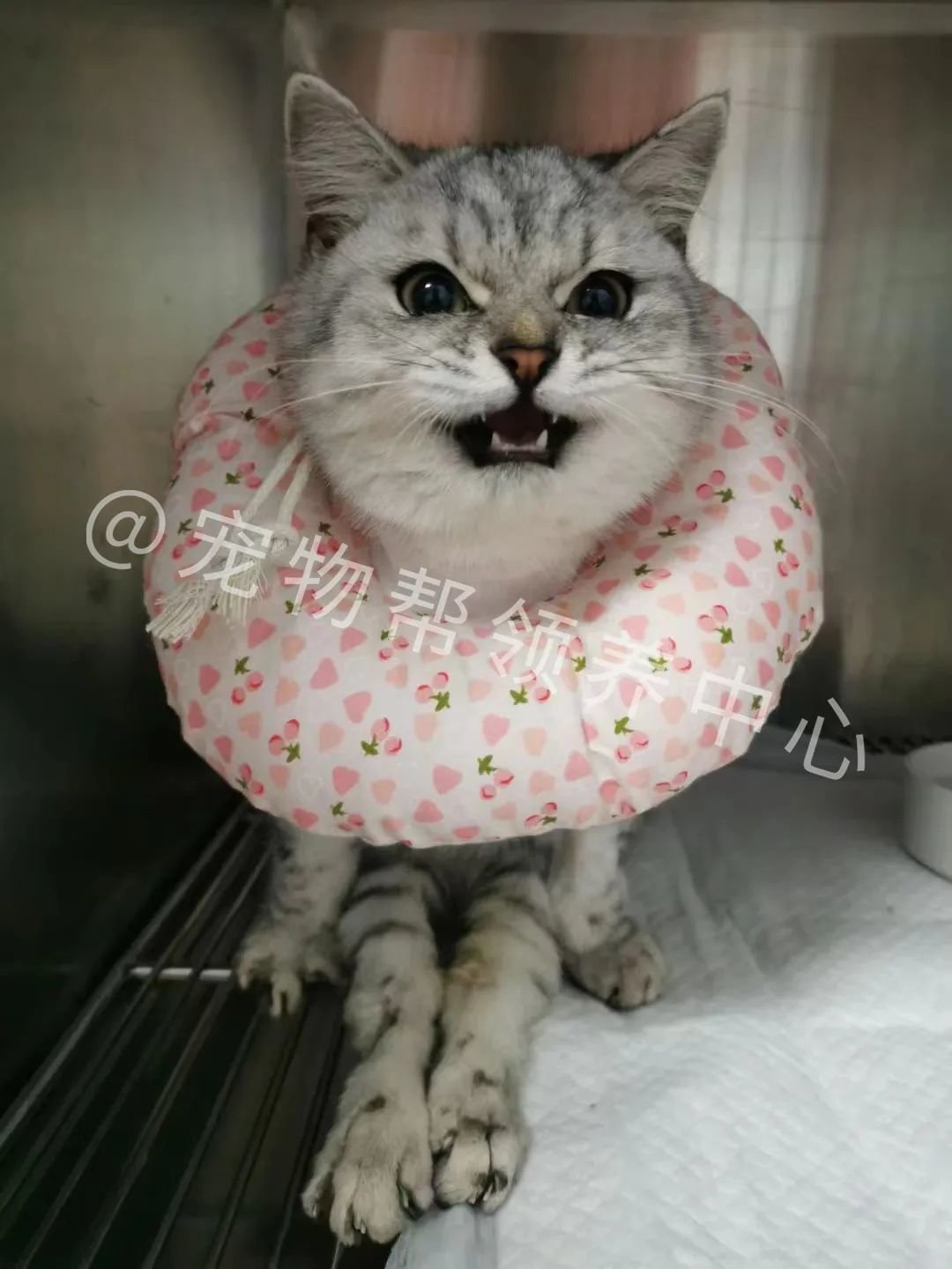 这只可怜的猫咪叫蓝妹妹,是10月17日,一位好心救助人在嘉兴某大酒店附近捡到的。
