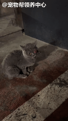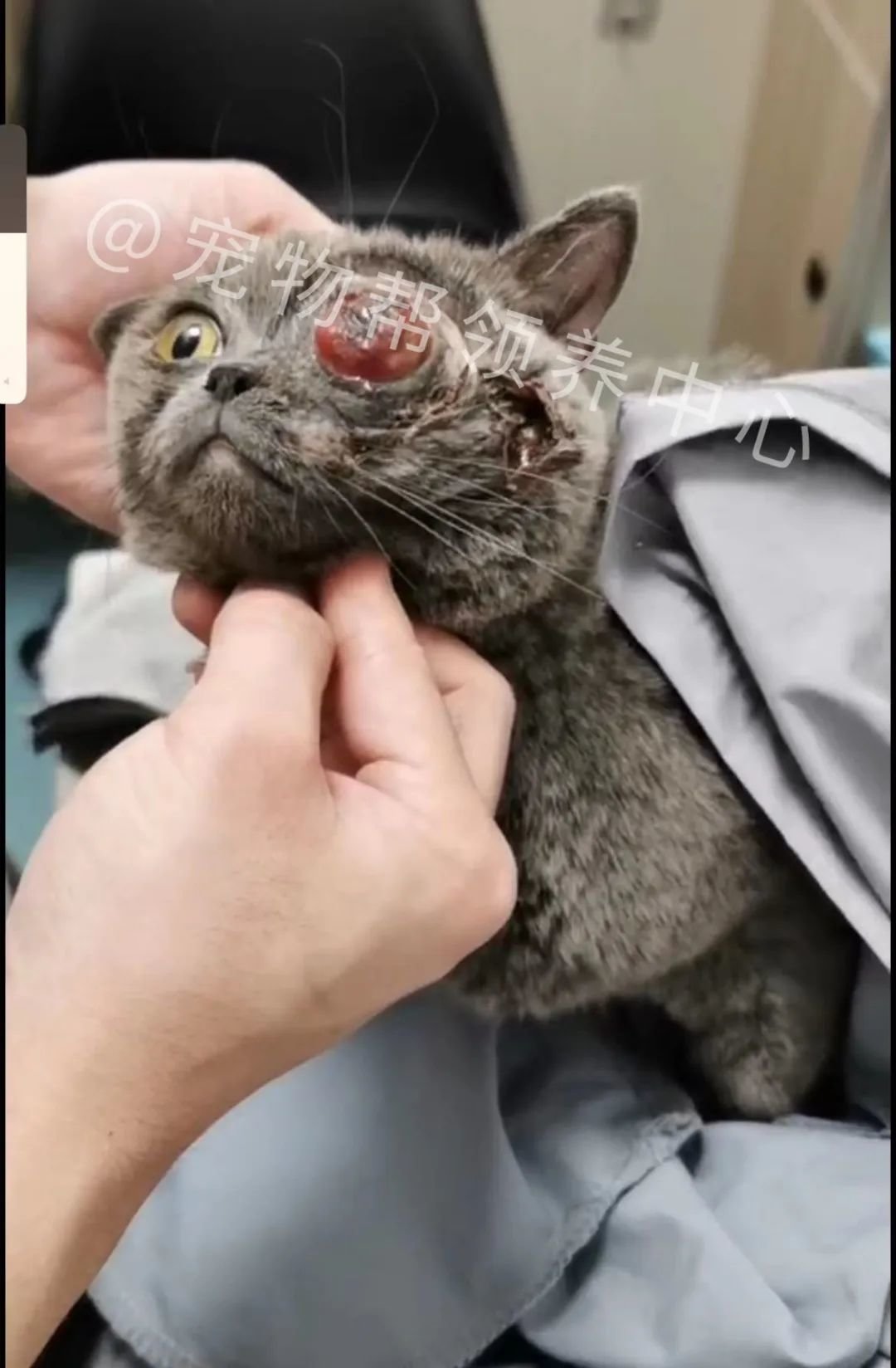 这是只2岁的纯种蓝猫,但在看到它的那一瞬间,救助人感觉自己仿佛误入某场恐怖电影。