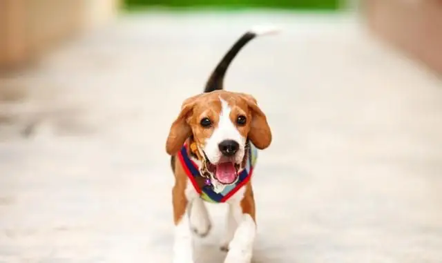 此时的狗狗正在处于高度兴奋的状态,尾巴向右边摇个不停。它已经在暗示你快点带它出去玩。