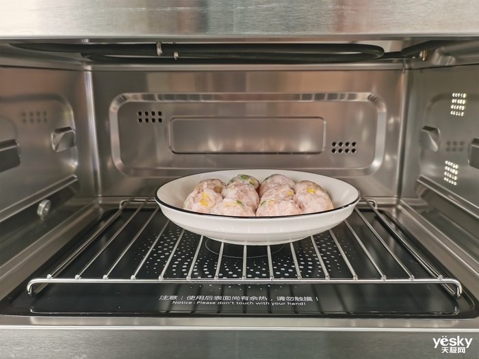此外,这款微蒸烤一体机还有微波+烧烤的功能,在烧烤的同时加上微波,烹饪速度加快,适合烤制猪蹄等比较大的肉类。