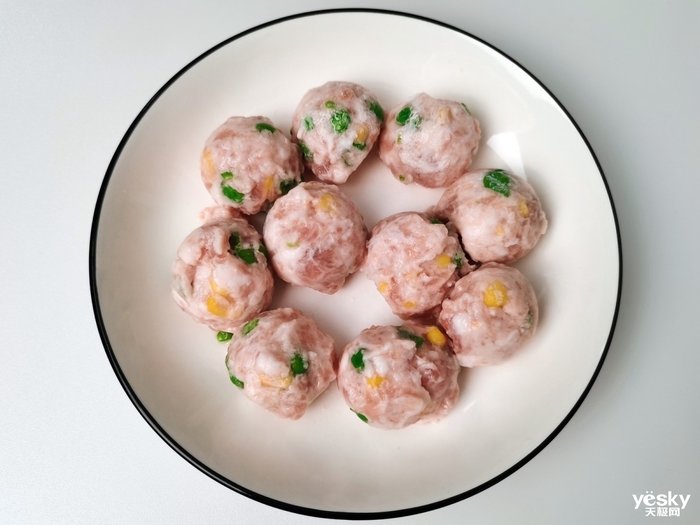 准备好玉米青豆猪肉丸一盘
