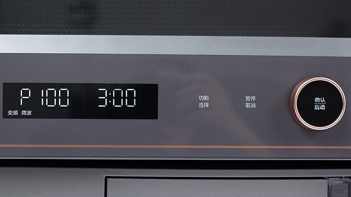 这款一体机拥有900W变频微波,是非常高的火力配置,它支持五档火力调控,旋钮向右转动即可快捷开启微波功能。