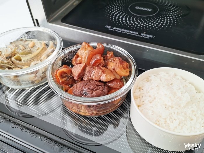 小编用上班自带午饭体验了这一功能。刚从冰箱里取出来的猪脚、鱼肉布满了凝固的油脂,在经过微波蒸汽加热后,肉的表面保留了满满的水汽。吃起来也是,保持了原先的嫩滑,不会干硬。